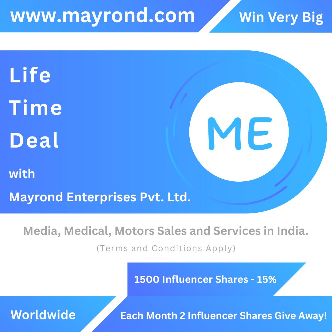 The selected influencers will receive a 0.01% equity share each in Mayrond Enterprises, valid for the lifetime of the company - (Terms and conditions apply)